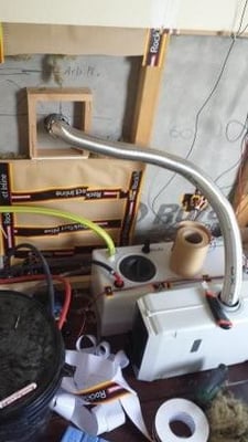 Ich staune immer wieder beim Betrachten der Fotos, was doch so im Laufe eines Monats alles erledigt wurde. Die Trumatic E 4000 ist da und ich baue den Wandkamin ein. Der Wandabschnitt wird