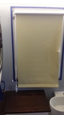 Waschbecken, ein Rollo vor das Fenster und ein Duschvorhang vor die Dusche. Sieht echt klasse aus.