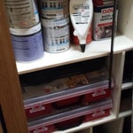Lacke usw. Mittlerweile ist der Raum bis unter die Decke voll, und der nächste Umbau im Wohnwagen steht schon an, um weiteren Platz zu gewinnen. Ist halt nicht so einfach, wenn man keine