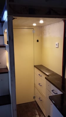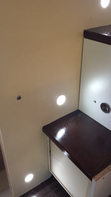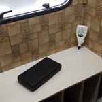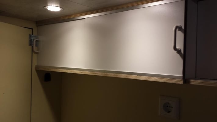 Da der Platz im TH jetzt doch immer weniger wird fing ich an den Wohnwagen umzubauen. Das Mini-Bad von 50 x 80 cm wurde komplett ausgeräumt, eine neue LED-Leuchte installiert und dann wurde ein