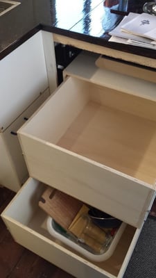 Schubladen von ca. 60x60 cm zu finden, eine weitere kleine für Besteck kommt noch oben drüber.