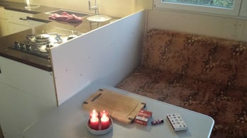 breite Bank. Hier habe ich dann erst mal provisorisch die Polster aus dem Wohnwagen aufgelegt und den ersten Abend auf der Bank genossen. Toll. Heizung an, angenehm warm bei 0 Grad